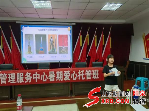 最后,老师问大家:如果将来雨果奖在阳泉举办,你们会怎么设计奖杯呢?孩子们发挥自己的想象力,纷纷画下了充满各种家乡元素的雨果奖杯。“我的画里有象征未来的火箭,代表浩瀚宇宙的星星,旁边是被誉为我国科幻第一人的刘慈欣,是我们阳泉人,既是科幻的符号,更是阳泉的骄傲。”辖区青少年张静雯介绍着她的设计,获得了大家的一致好评。