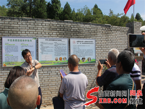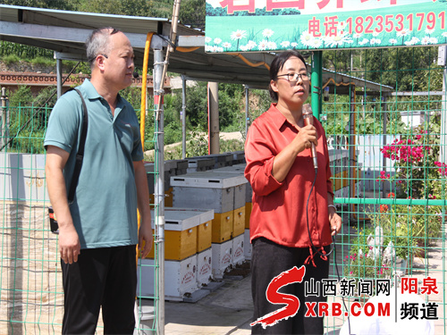 活动伊始,平定县碧园蜜蜂养蜂场负责人郭永贞对参会人员表示热烈欢迎,并介绍了蜂场建设情况。从最初10箱蜜蜂起步,碧园蜜蜂养蜂场的规模如今已扩展到80多箱,同时经过三年探索实践,成功掌握了多箱体生产成熟蜂蜜技术,为当地养蜂户树立了技术致富的典范。