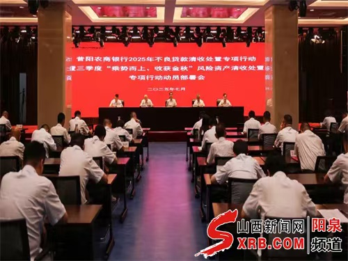 7月3日,山西昔阳农村商业银行召开不良贷款清收处置专项行动暨三季度“乘势而上、收获金秋”风险资产清收处置专项行动动员部署会,会议强调全行上下须统一思想、凝聚合力,以坚决态度和务实举措打好清收攻坚战。党委班子、支行行长、部门负责人、客户经理代表参加会议。