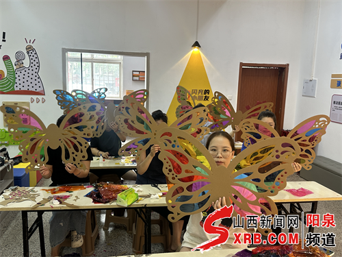 在知识科普环节结束后,社区党委书记带领共建单位“爱星妈妈”一同参与“光影蝴蝶翅膀”手工制作。这些蝴蝶翅膀由“爱星妈妈”精心设计,大家齐心协力,共同完成制作。