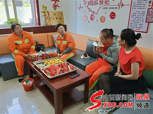 环卫工人张阿姨捧着一块西瓜,脸上露出欣慰的笑容。“我们每天在太阳底下清扫街道,衣服湿了又干、干了又湿,早就习惯了。现在工会驿站不仅有空调,还能吃上这么甜的西瓜,饿了还有方便面填肚子,真的特别贴心。”她坦言,这份来自驿站的关怀,让自己在高温天里工作更有劲头了。