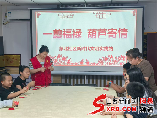 为传承优秀传统文化,丰富学生们的假期生活,8月22日,阳泉矿区沙坪街道蒙北社区新时代文明实践站开展“一剪福禄 葫芦寄情”主题活动,吸引了众多学生参与,气氛热烈。