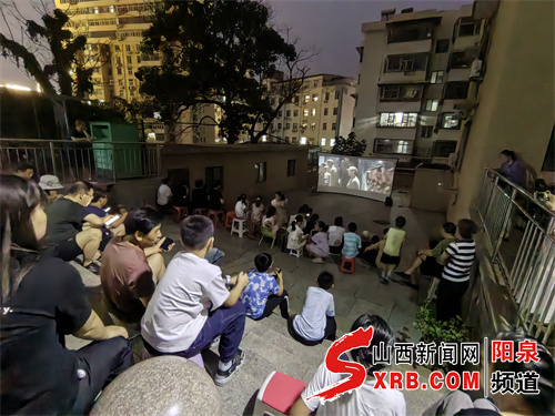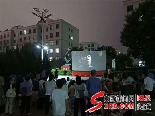 暮色四合,晚风轻拂。8月25日晚,阳泉矿区赛鱼街道大垴沟社区的夜空被灯光点亮。居民们三五成群围坐在电影幕布前,老人们轻声讲述着镌刻岁月的抗战往事,孩子们凑在一旁听得入神,期待的目光随着幕布轻轻流转,等待着一场红色光影之旅的开启。