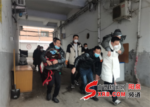 “大家快来搭把手,咱们一起把老人抬下来。”2月9日下午,阳泉市城区紫薇花园的一位瘫痪老人就医时遇到了下楼难的问题。由于楼道较窄,楼层较高,120的医护人员无法顺利将老人抬下楼。正当家属们焦急万分的时候,阳泉市城区南山路街道的党员干部们挺身而出,将老人安全送到了救护车上。