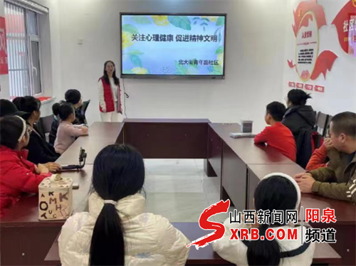 为普及心理健康知识,促进社区居民身心健康,进一步加强社区精神文明建设,2月15日下午,阳泉市城区北大街青年路社区依托“社区党校”开展“关注心理健康,促进精神文明建设”心理健康知识活动。