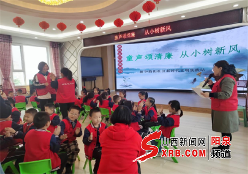 阳泉市城区南山路街道新华西街社区通过廉洁童谣的方式让孩子们在感受清廉文化魅力的同时,让廉洁的种子在他们心中生根发芽,让清廉之花通过“小手拉大手”牵动家庭、社会廉洁风尚的形成,营造“崇廉拒腐”的良好社会氛围。