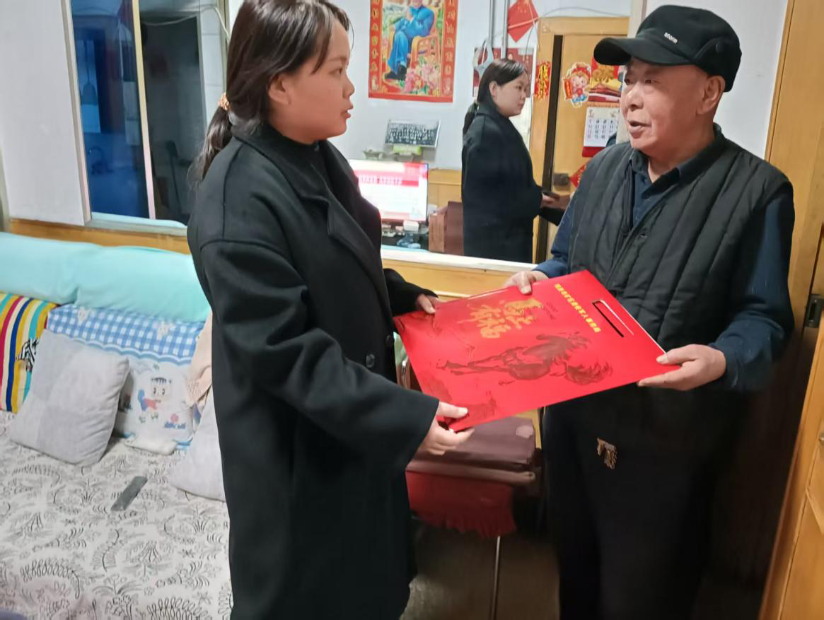 岁末辞旧,新春将至,为传承拥军优属的优良传统,向为国家和人民奉献青春与热血的退役军人致以崇高敬意,2月9日,阳泉市矿区蔡洼街道南台社区退役军人服务站开展“新年送福送春联,情暖退役军人心”新春慰问活动,为辖区内退役军人及军属送上对联、挂历与真挚的节日祝福,让老兵们在寒冬中感受到社区大家庭的暖心关怀。