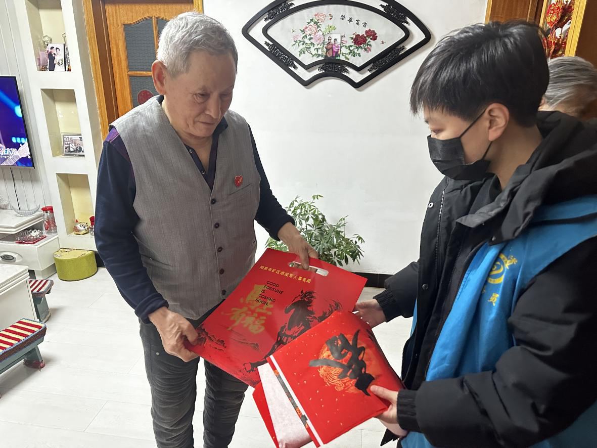 针对辖区行动不便、出行困难的退役军人,社区志愿者主动上门送福,亲手将新春礼品送到老人家中,与他们促膝长谈,关切询问生活起居与健康状况,耐心倾听心声与诉求,用实实在在的行动传递温暖与敬意。“感谢社区一直记挂着我们,这份慰问让我们心里暖洋洋的!”退役军人郝师傅手捧对联,脸上洋溢着幸福的笑容。退役多年来,他始终坚守军人本色,积极参与社区公益活动,用实际行动诠释着退役军人的责任与担当。